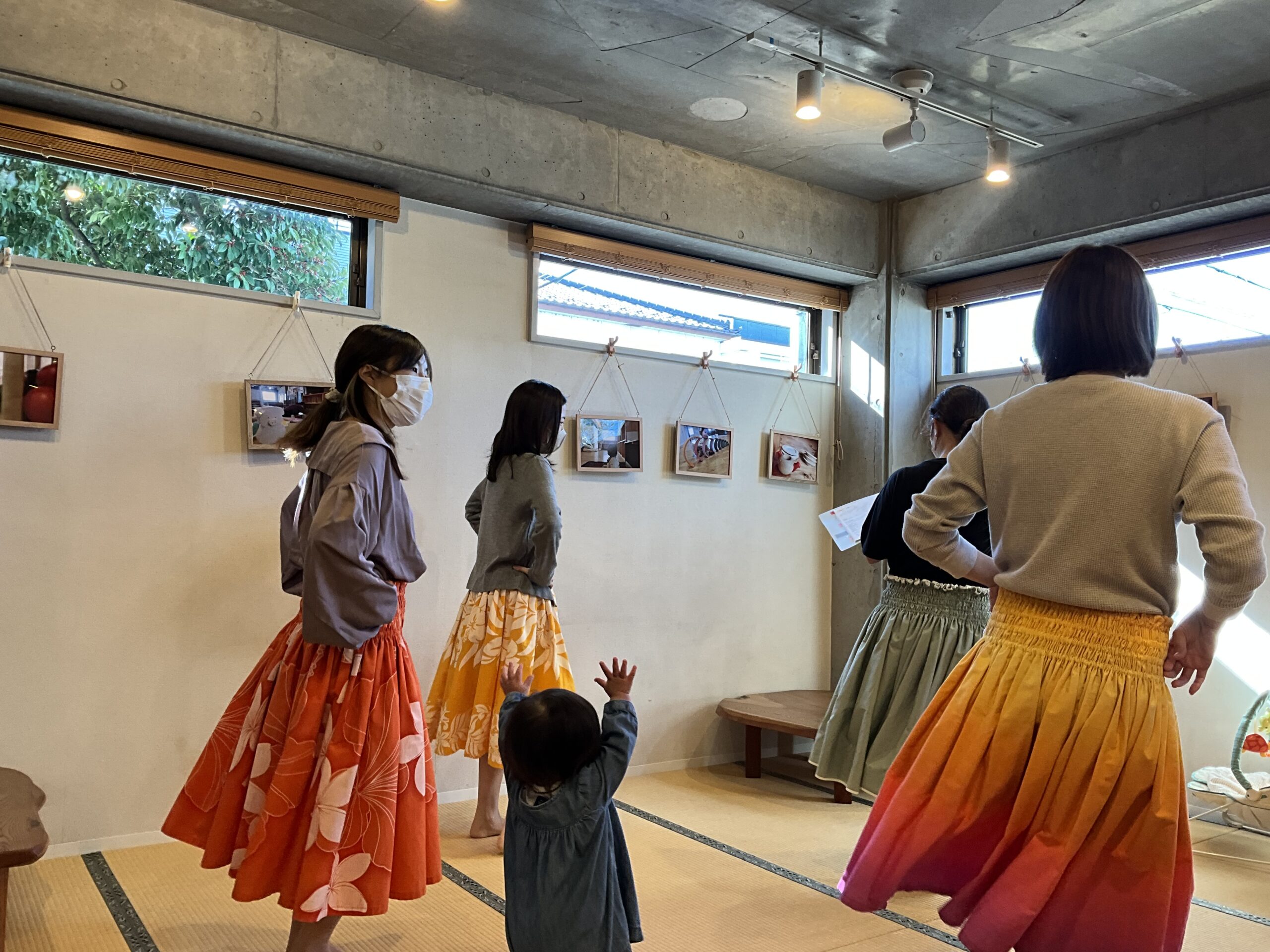 わたぼうしで毎月行っている「~妊娠期から出産後まで~みんなでHawaiian Hula」では、Hulaの前の数十分間、助産師から妊娠中や産後の身体の整え方を伝える時間を設けています。先日は寒くなってきたこともあり、足の指を一本一本回して動かした後、足首全体を動かす時間をとりました。最初は皆さん、足先が冷たかったのですが、「少しずつ暖かくなってきました!」とおっしゃってくれました。そうして足首や足先をほぐしてからお伝えしたのは、腰痛を防ぐ歩き方のコツです。身体を真っすぐ伸ばし、しっかり地面を踏み締めるよう意識しながら、踵からつま先へ順番に体重が移動していくように歩き、最後につま先でしっかり「トンッ」と蹴り出す歩き方。毎日する動きだからこそ、少し意識して身体に負担をかけない動きを出来るといいな、と感じています。最後に骨盤底筋を鍛える動きを皆で行ってみました。両足の踵をくっつけてつま先を90度に開き、お尻をキュッと閉めるよう意識しながら膝の曲げ伸ばしを行います。妊娠中~産後は、お産に向けて分泌されるホルモン「リラキシン」の影響で、筋肉や靭帯が柔らかくなり、骨盤や骨盤周りの筋肉も緩みやすい時期になります。この時期に意識して骨盤底筋を鍛えられると、尿漏れ予防や、子宮等の内臓の位置が下がってくるのを防ぐ事が出来ます。さて、今回行った身体を整えるこれらの動きなのですが、実はHulaの動きに通じるのです!!しっかり大地を踏み締め、裸足で踊るHula…さらにHulaの基本姿勢では、お尻をキュッと閉め、腹筋を意識します。足裏はしっかり大地(母のエネルギー)と繋がり、上半身は天(父のエネルギー)と繋がり踊るという意味があり、子孫繁栄の意味もある舞で、子宮に意識をおくという教えもあるそうです。この他にもHulaには女性の身体を整えたり、人の本来持っている力に気付けたりするような…そんな教えや動きが沢山あるなあ、といつも感じています。この日もこの後、音楽に合わせて皆さん笑顔でHulaを踊られました。楽しみながら自分自身の身体を感じ、鍛えたり整えたり出来るHula、是非体験していただきたいです!そして、忙しい毎日を過ごす育児中の皆さん、自分自身の身体と向き合ったり、大切にしたりする時間をとるのは中々難しいですよね。だからこそ、これからもわたぼうしの「みんなでHawaiian Hula」では、日々の生活の中で身体を整える方法をお伝えしたり、自分を大切にしたりする時間を作っていただけたらと考えています。ふと立ち止まって、自分の身体に目を向ける時間を是非わたぼうしで過ごしてみませんか?Y.F